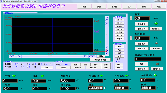 1、測試參數(shù):轉(zhuǎn)速、 扭矩、 功率、電流、電壓、輸入功率、效率; 2、參數(shù)顯示方式: 計算機屏幕顯示; 3、數(shù)字設定扭矩值,DTC自動控制; 4、打印試驗報告; 5、空載試驗、加載試驗; 6、具備倒拖功能; 7、動態(tài)曲線顯示; 8、恒轉(zhuǎn)速控制模式、恒扭矩控制模式。 五、主要測量及顯示參數(shù)、范圍和精度