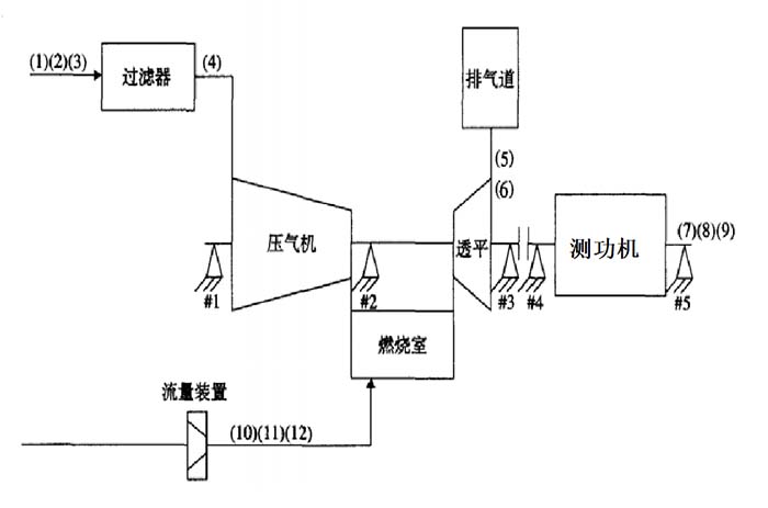 燃氣輪機試驗臺是一項復雜的工程,其不僅需要燃氣輪機及各試驗參試設備全部妥善安裝,更離不開各燃氣輪機試驗臺外系統的支持。一個完備的燃氣輪機試驗臺至少應具備的外系統及其測點布置列舉如下: